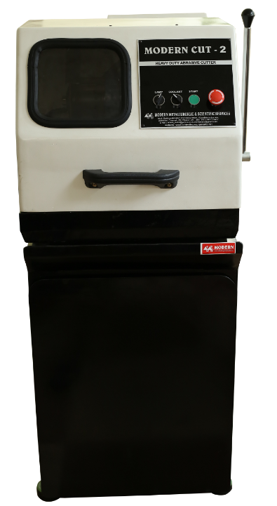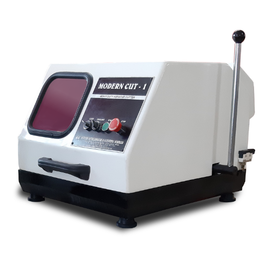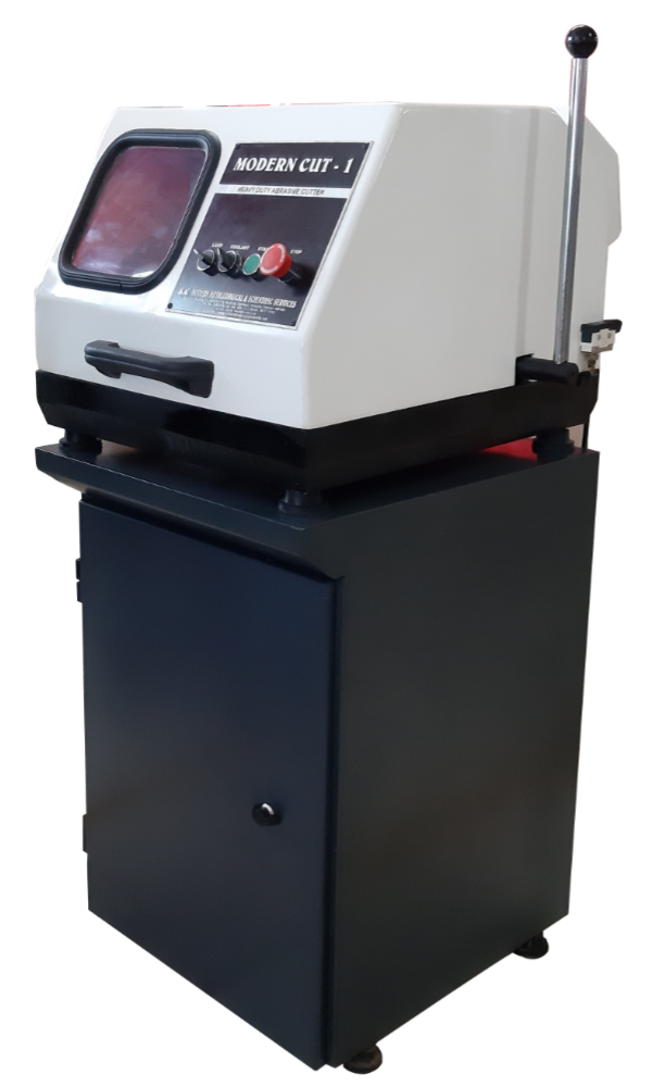 Sample section is important for the metallurgical field. Is this samples cutting method many of them abrasive cutter, band saw, industrial hacksaw, hand hacksaw, wire EDM respectively. The industrial hacksaw cut the samples have burr with shapeless similar to hand hacksaw methods. Wire EDM machine have to higher cost, large space. Demerits of the EDM machine will developed white cast layer developed on cutting edge, is this not like metallurgist, because material removal is evaporating method to be cut the machine. Now, Introduced abrasive cut off machine .In this machine working in abrasive wheels or diamond cut off the wheel to drive the high-speed electrical motor. The electrical motor high torque with higher speed produced in which samples cut it to be within a minute. Here have used first grade abrasive cut off wheel and diamond cut off wheels. In this machine has highly durable sheet material with nicely Painting or powder coated. We are designed ergonomic method, machine have less weight. The working table to fix the Samples holding by (degrees of freedom) arrested locking device. This machine fully operated water-based coolant circulated beginning to end of the sectioning. The coolant water stored in separate storage coolant tank with rust free material build the body. The samples were holding shapes like round, rectangle, squares, hexagonal and sim types etc., to monitored cutting samples to view by glass with attached electrical lamp and protected doors, the doors are hydraulic stick operated. Simple Maintenance frequently: monthly maintenance, maintenance is very simple are given below,
