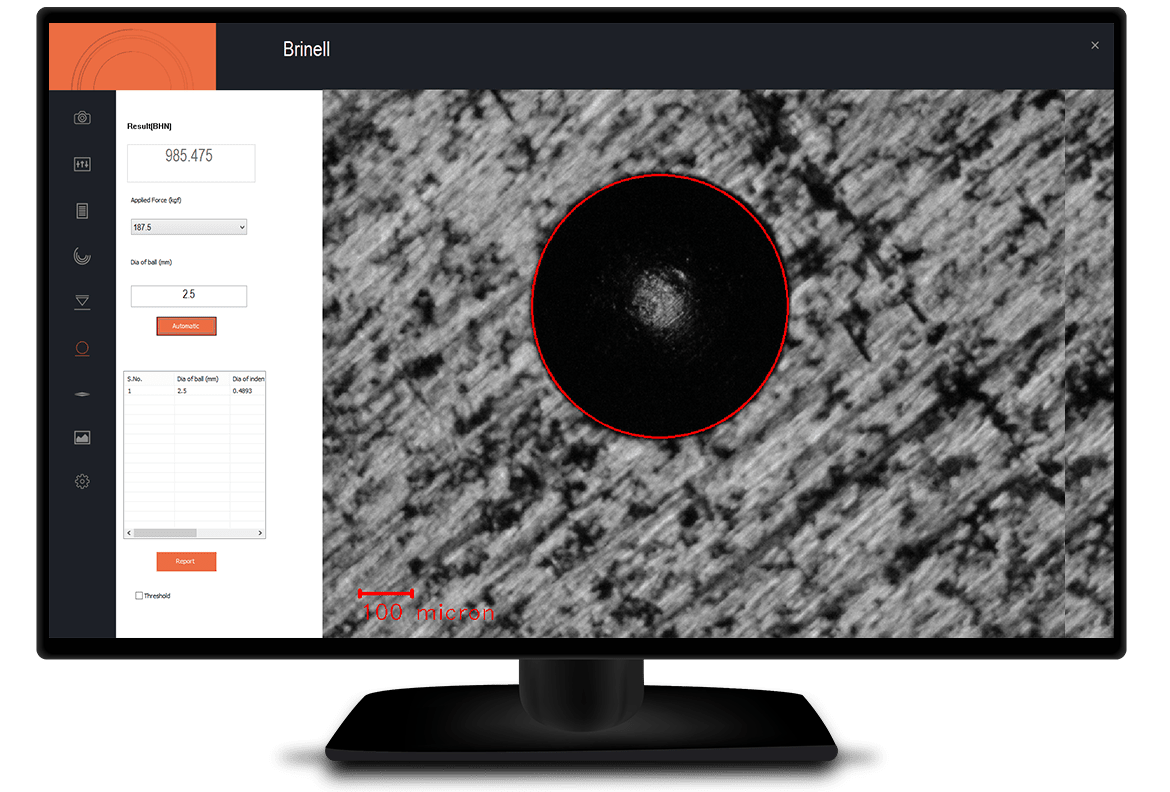 Brinell Pro is portable System to automatically measure and determine the Brinell Hardness value. Brinell microscope allowing quick, automatic, and accurate reading with no operator influence on the measurement. The magnified indentation on the screen also permits detection of any defect in the surface finish or the indentation. The Software is compatible to window 8 & 10.